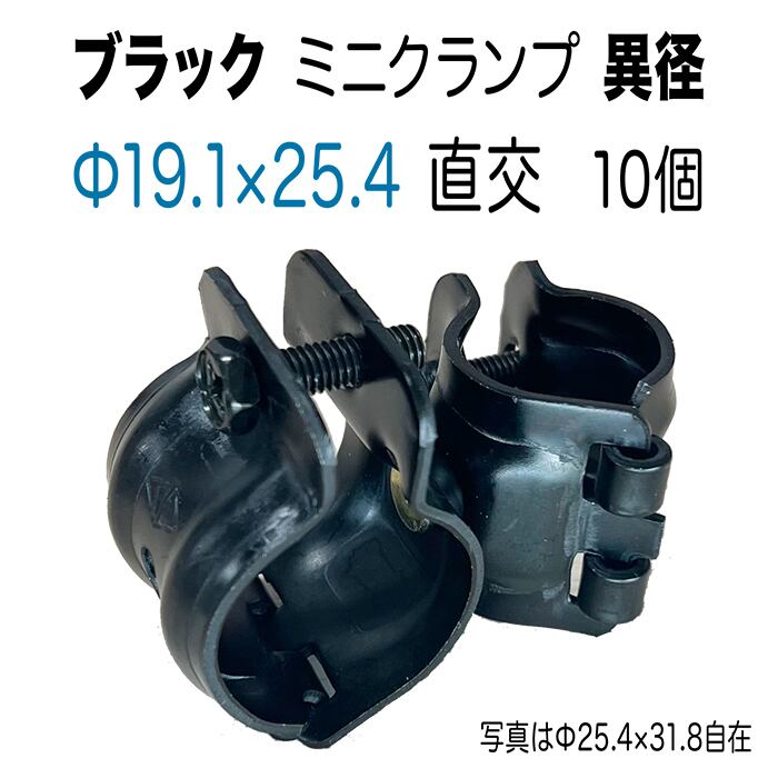 Φ19.1×Φ25.4パイプ用【黒いミニ・クランプ(直交)】を10個で販売。