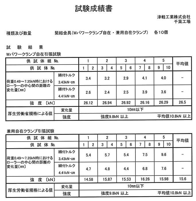 Wパワークランプ 自在 15個 1075 兼用タイプ 同社比2倍のスベリ耐力 Φ48.6から42.7のパイプに対応 仮設工業会認定商品 津軽工業製 まさにスーパークランプ