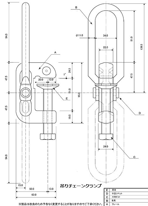 吊チェーンクランプ 20個 4138 吊りチェーンクランプ 上下から締め付け可能 有効開口寸法43mm 座金付き 津軽工業製
