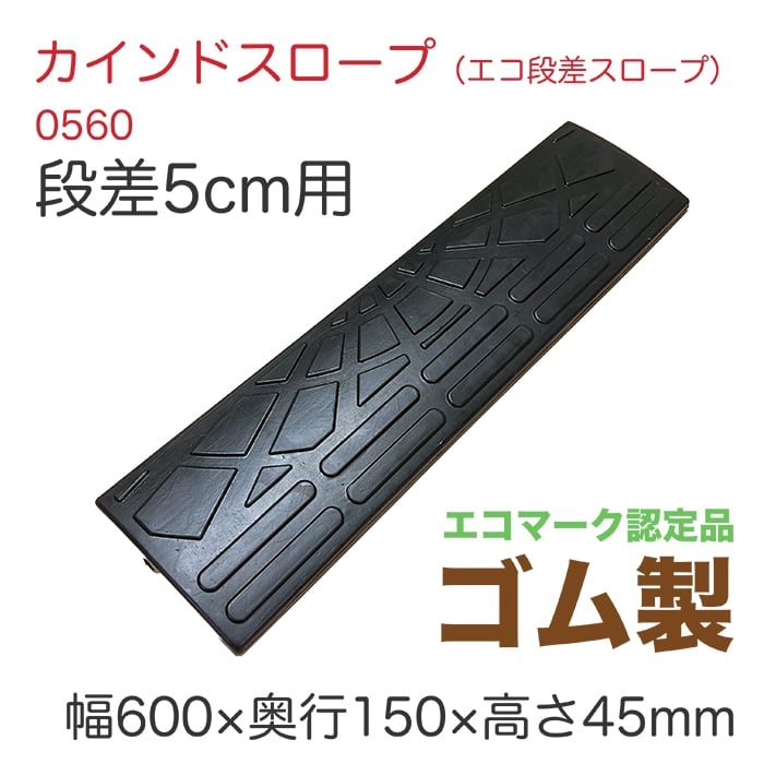 カインドスロープ エコ段差ゴムスロープ 段差5cm用 0560本体 kaizu 1枚 H45×D150×W600mm。黒色(1.6kg) 接続ボルト付 本体の重量に加え、連結により強固に固定 高品質ゴムのリサイクル エコマーク認定製品 環境配慮 自転車 介護 車椅子 ベビーカー シルバーカー
