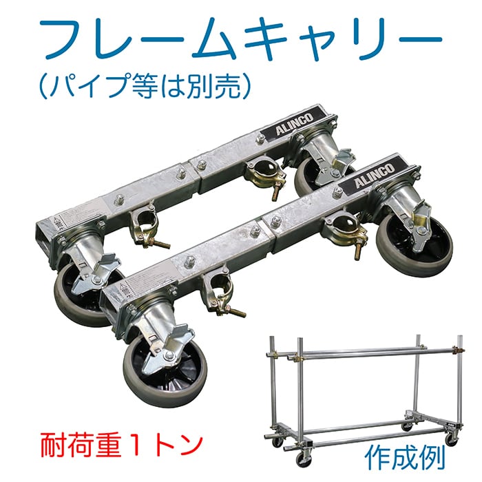 フレームキャリー MSD1000 2個組 別売パイプで簡単に長物キャリーが作れます 鋼製 溶融亜鉛メッキ パイプなどは別売 作成 キャスター 台車 キャスター お手持ちの単管パイプなどを使って台車が作れます 運搬用台車パーツ 足場 部材 運搬用 アルインコ