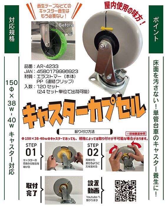 キャスターカプセル 24個 単管台車のキャスター養生 対応キャスター 150Φ×幅38から40 AR-4233 床面を汚さない リニューアル現場作業など 汚れ防止の場所で活躍 アラオ AR4233 CAFなどに