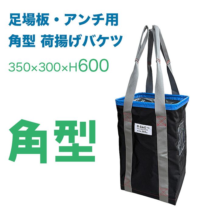 NバッグS (i4型)H600 1個 荷揚げバケツ角型 350×300×H600 フタなし,最大荷重約100Kg, アンチ 足場板用電工バケツ,トン袋,フレコン,荷上げ,荷下,吊り上げ,バッグ,袋,かばん,工事用,つり袋,吊袋,揚重,N-BAG,リフトバッグ,ハーフアンチ,レールハンガー,バッカン,スクエア アンチ 足場板用 角型 超強力大型荷揚バック。アイ型ベルト4本、建設、建築、土木、仮設工事、配管、電工、足場に。厚底鉄板で突き破り防止 足場板など荷上げ用に 四角 長方形