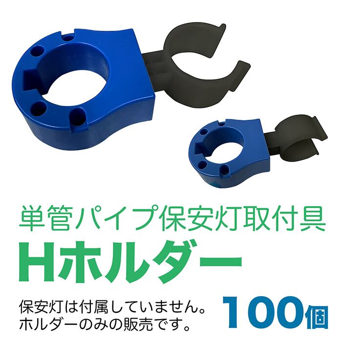 単管パイプ保安灯取付具 Hホルダー 100個セット 個人宅配送の場合送料追加します Φ48.6パイプに保安灯などを設置できます 水平方向使用、垂直方向使用どちらへも簡単に切り替えられます 樹脂製(金具ではない)なので怪我の心配も軽減 保安灯差し込み部の内径は41mm