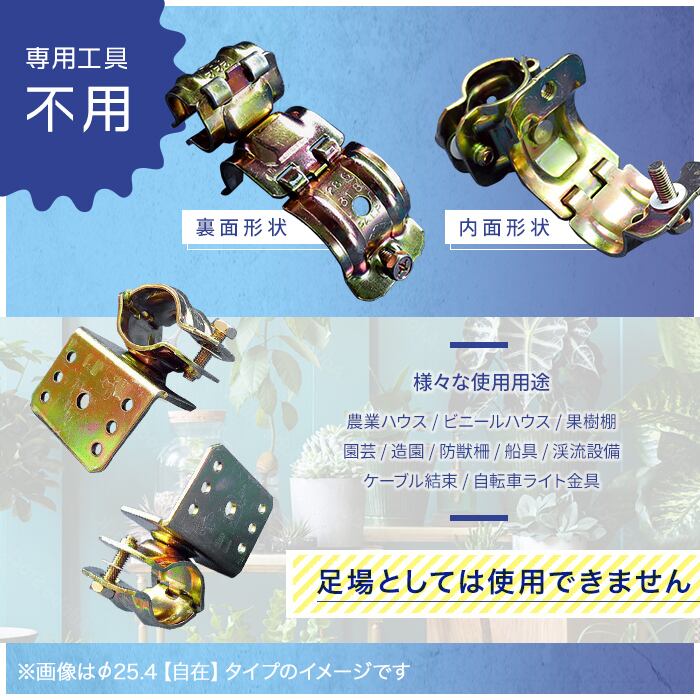 ミニクランプくめーる タルキ止めクランプ 首振 自在 Φ34.0〜38.1用 80個セット j-1114 just 垣根仕立 垂木 ミニクラ パイプクランプ ドライバーで組立て