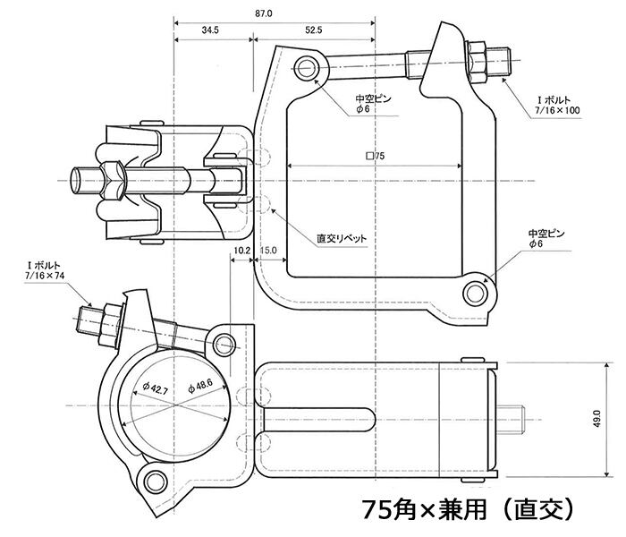 --- 75角パイプ用(単クランプ、角×角、角×単管パイプ用)