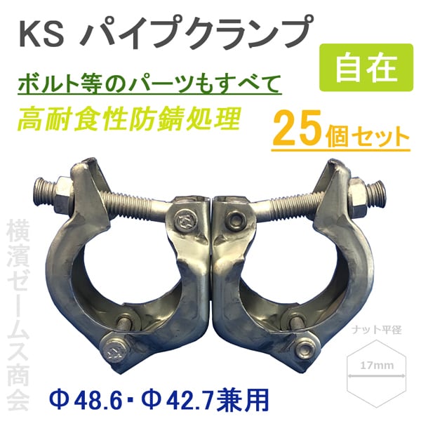 KSパイプクランプ 自在 Ф48.6・Ф42.7兼用 25個セット ディスゴ処理,高耐食性めっき鋼板ZAM 1030041単管パイプ用 国元商会 クニモト
