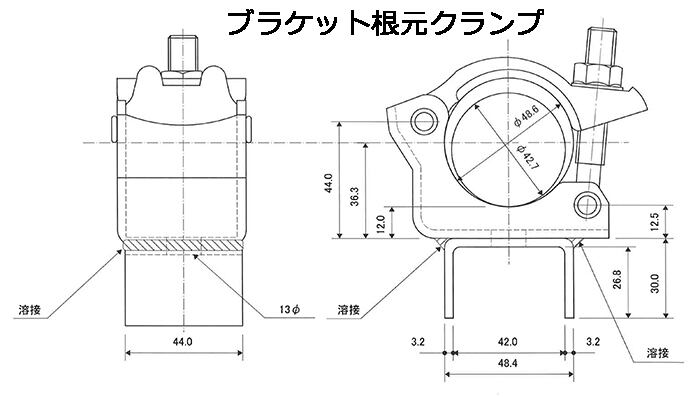 ■クランプ部は、Φ48.6とΦ42.7径の兼用タイプ