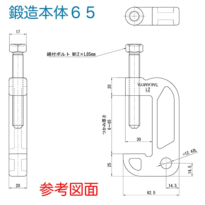 ■正式名称=キャッチクランプ鍛造本体65(締め付けボルト付)