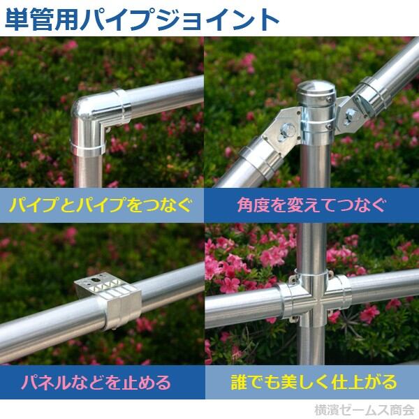 市販の単管パイプ(外径48.6mm)を簡単にジョイントできる金具です。(JIS許容範囲±0.25mm対応)