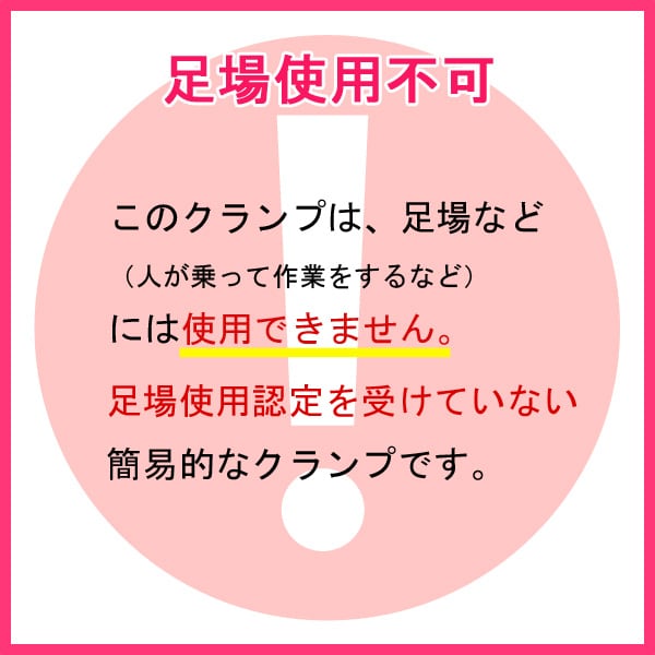 ※このクランプは、足場など(人が乗って作業をするなど)には使用できません。