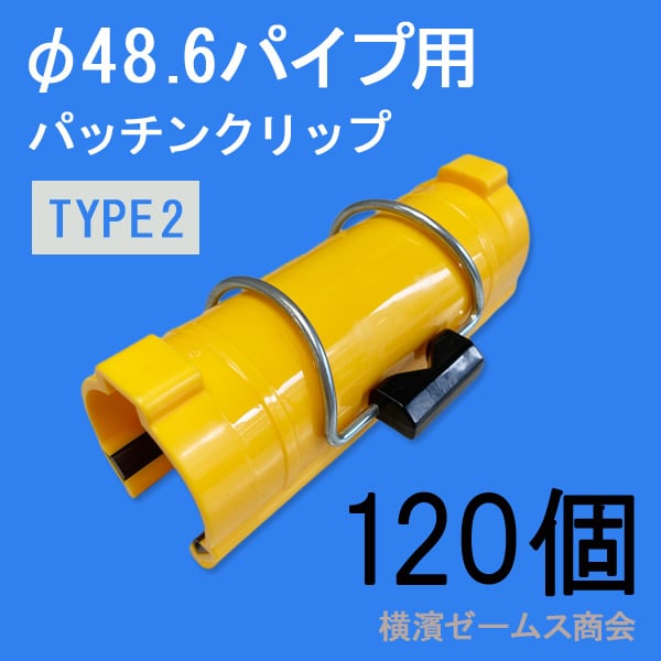 新 パッチンクリップ TYPE2 120個 φ48.6 パイプ 専用 アラオ AR-2334 AR2334 各種シートを単管パイプに固定。各種養生に、建設資材だけでなくバイク、車、自転車の雨濡れ防止に。農業・園芸にも。パッカー。本体樹脂製 黄色 旧番2333