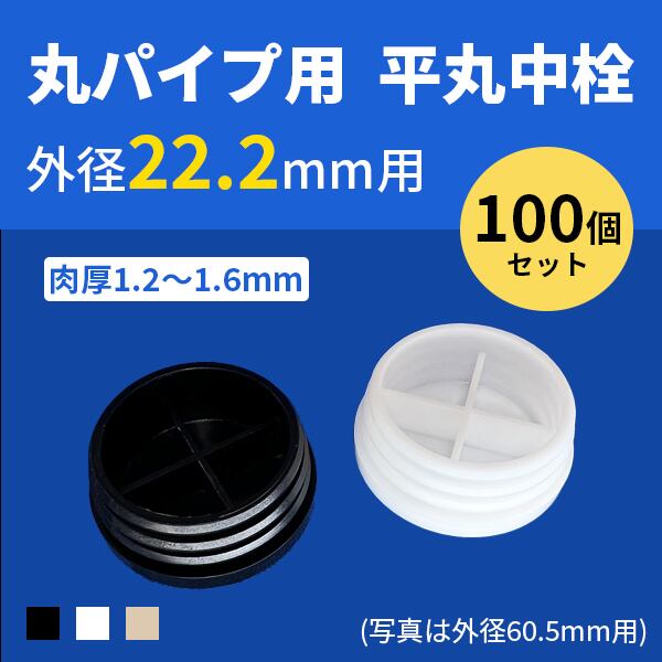 丸パイプ用平丸中栓 外径22.2mmパイプ用 肉厚1.2〜1.6mm 102-10010 ceg 100個 黒 白 アイボリー 樹脂 プラスチック
