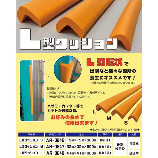 L型クッション Mサイズ 32×32×900mm 厚さ10mm 4本セット AR-0847 AR0847 コーナー部の保護,養生材 屋外使用不可