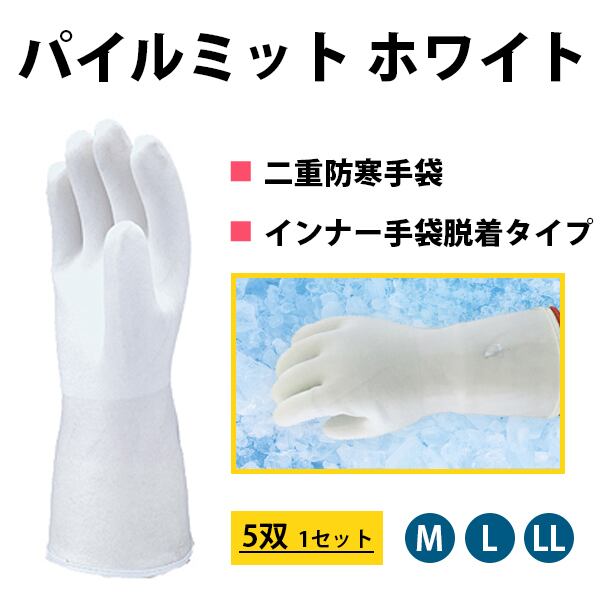 パイルミット ホワイト 5双 M L LL mci インナー手袋が脱着できる防寒手袋 清潔に使用可 寒冷地での作業に最適 吸湿発熱繊維 作業用手袋 ミエローブ
