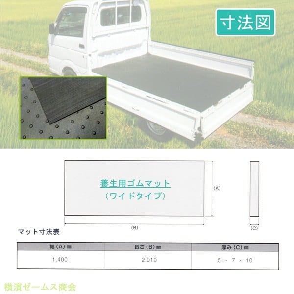 養生用ゴムマット ワイドタイプ 厚み10mm 1400mm×2000mm 1枚 uos トラック 荷台 軽トラ 歩行 農業 選果場 ハウス 敷くだけ雑草対策にも