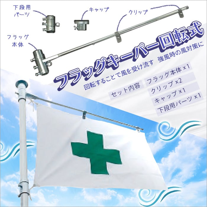 フラッグキーパー(回転式)1本、48.6Φ単管用 回転することで風を受け流してくれます。AR-1261,AR1261,社旗、安全旗,旗,設置,ARAO(アラオ)