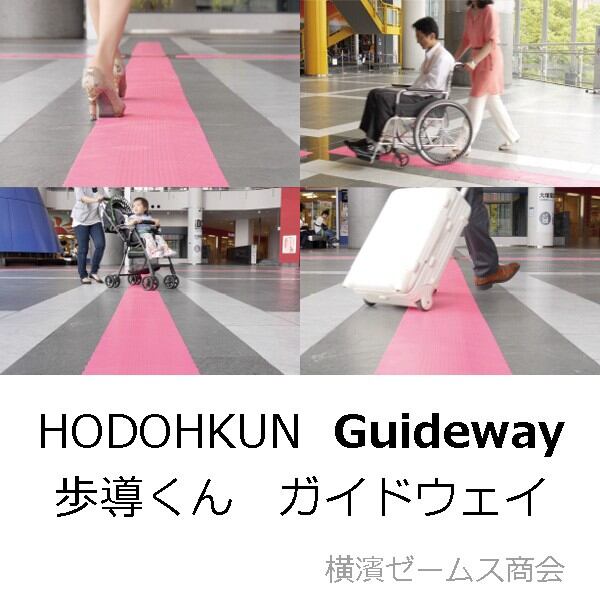 HODOHKUN Guidewayは、視覚障がい者の方が白杖でやわらかいマットを確認して目的地にたどり着ける、歩行誘導ソフトマットです。
