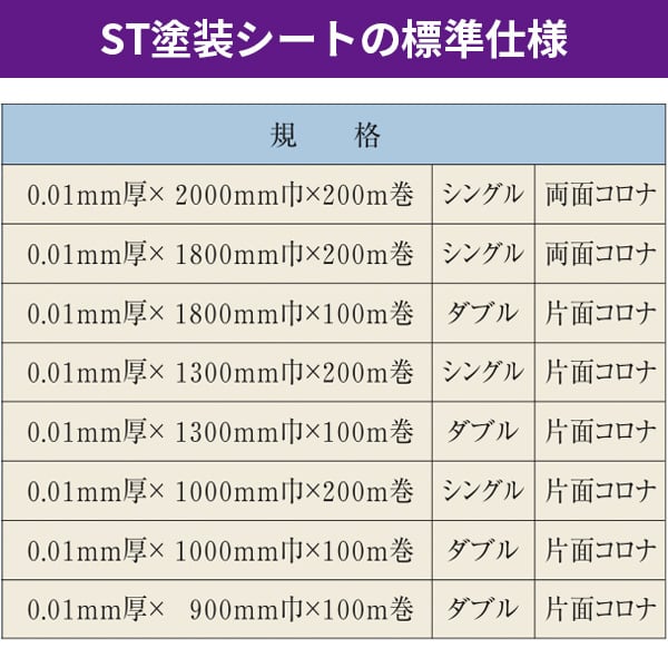 ST塗装シートは塗料剥離防止処理とノンカッタータイプの2大特性を付加した「塗装養生用ポリエチレンシート」です。建築の現場塗装などで手際よく養生作業ができ、また養生コストの低減も図れます。ポリエチレンですので、燃やしても有毒ガスは発生しません。ご利用の際は、シートの内側を外に向けてご使用ください。