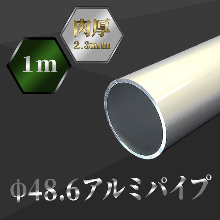 Φ48.6 アルミパイプ 1m 1本 肉厚=2.3mm 個人宅配送不可 軽量 錆びない アルミニウムのパイプ アルミ単管パイプ、バタパイプ、丸パイプ、鏡面仕上げで美観、店舗ディスプレイなどに。足場等には使用できません。表面はアルマイトとクリアコーティング