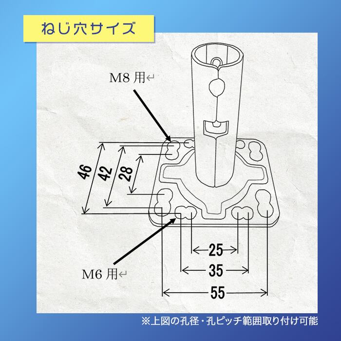 キャスター取付孔があいているので市販のキャスターが取り付け可能です。