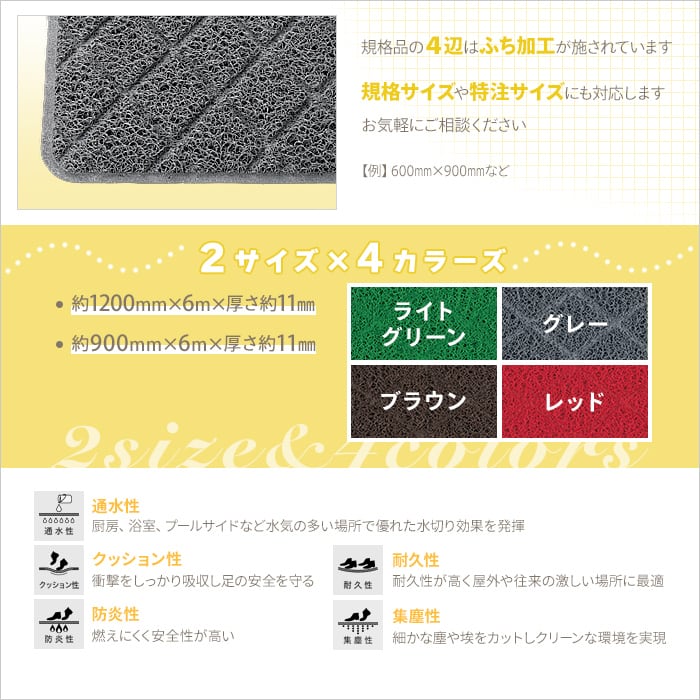 塩化ビニール樹脂製 透水性 集じんマット D&Nマット ミディアム 約900mm×6m 厚さ=約11mm 防炎 towa
