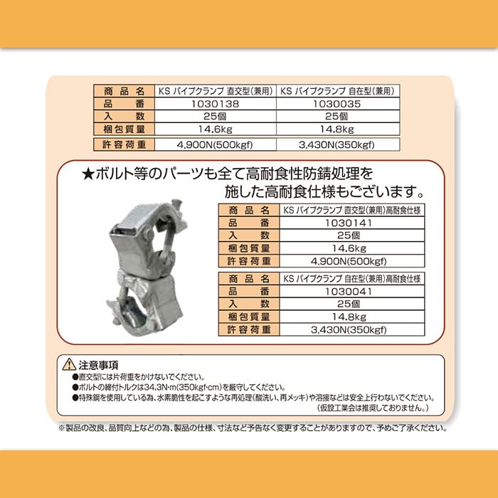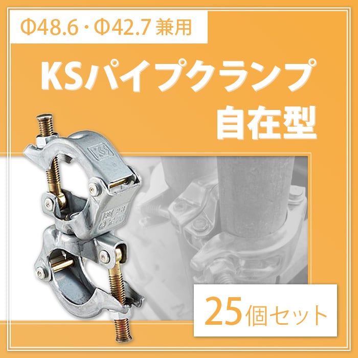 KS パイプクランプ 自在型 兼用 Φ48.6から42.7 ZA-JNF 25個 国元商会 クニモト 1030035 kms (個人宅配送不可)パイプ通しを結合する、ナット抜け止め加工のKSオリジナルクランプ。高耐食性溶融メッキ鋼板を採用、サビに強い。電動工具対応。業界最軽量クランプ