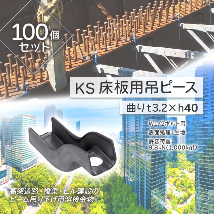 KS 床版用吊ピース 曲り t3.2×h40 100個 生地 0775026 W1/2ボルト用 国元商会 kms ビーム吊り下げ用溶接金物