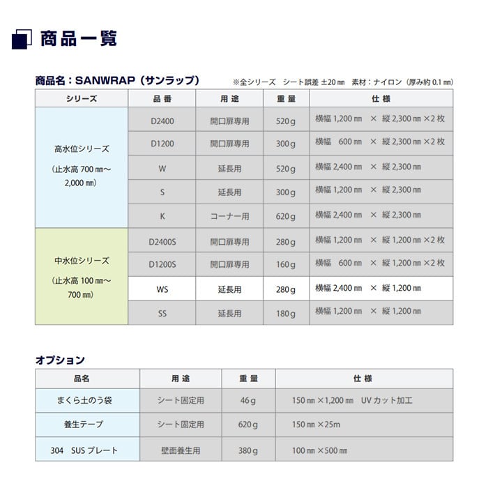 ※SANWRAP は大雨や洪水時の浸水を完全に防ぐものではありません。