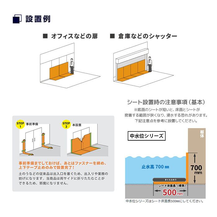 ※中水位シリーズ(100mm〜700mm)と高水位シリーズ(700mm〜2,000mm)があります。