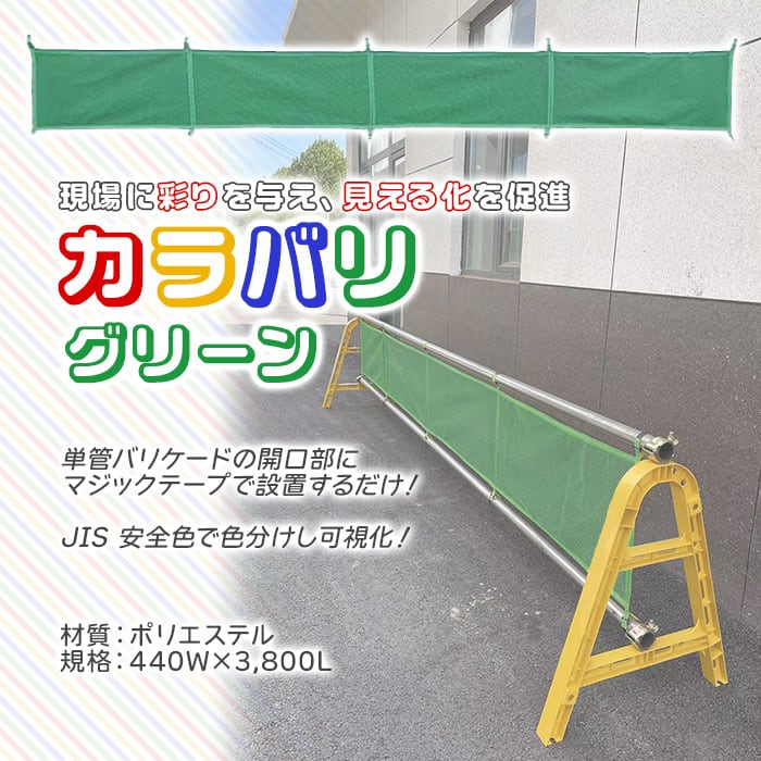 カラバリ グリーン 単管バリケード用メシュ AR-4206 AR4206 440×3800 バリケードの開口部に彩りを 数量によって特注色にも対応