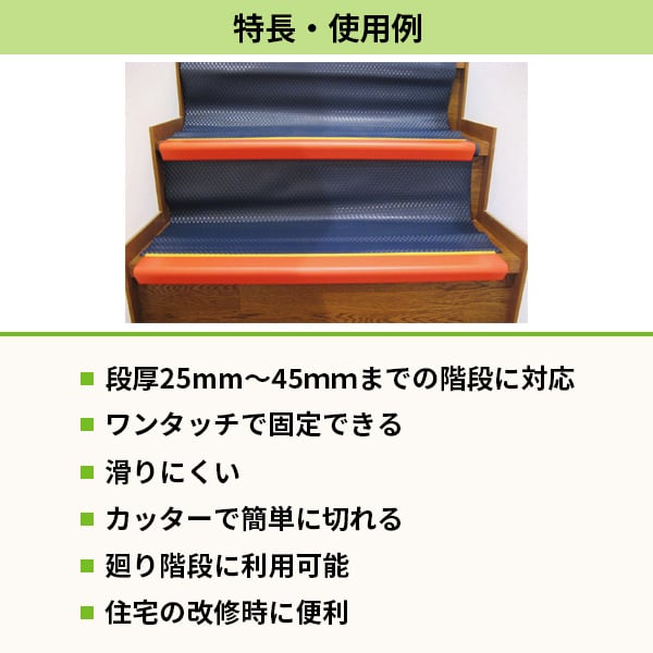・段厚25mm〜45mmまでの階段に対応で、ワンタッチで固定できます。