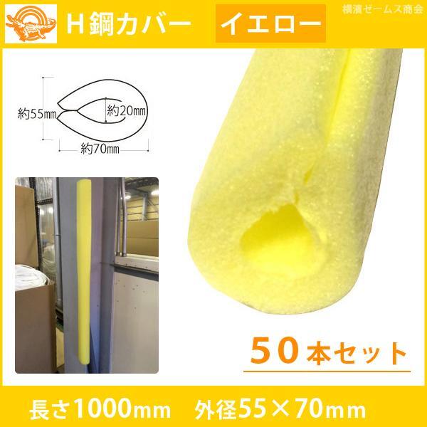 H鋼カバー イエロー 長さ1000mm サイズ55~70mm 内径約20mm 50本セット 日大工業 000053 養生カバー,養生材,足場用品,スポンジ,クッション,手すり,柱,開口枠,黄,ショックレスシリーズ H鋼の養生に最適です